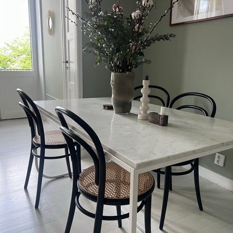 Säljer matbord Bermuda, formgivet av Thomas Eriksson för ASPLUND Collection. Bordskivan i Carrara marmor och benen är i lackad metall vit. År 2006 fick bordet "Red dot design award" och 2007 utsåg Elle Decoration Bermuda till vinnare av Årets möbel. Bordet har ett par mindre nagg och märken i stenen, men på hela taget fint skick. Nypris 50 000 kr. Obs att det krävs fraktfirma som kan flytta sten.