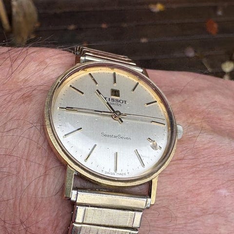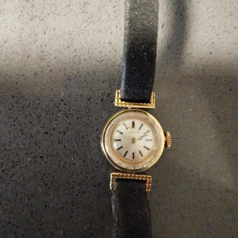Tissot damklocka i guld med metallarmband. Klockan är designad för kvinnor och har en klassisk stil.