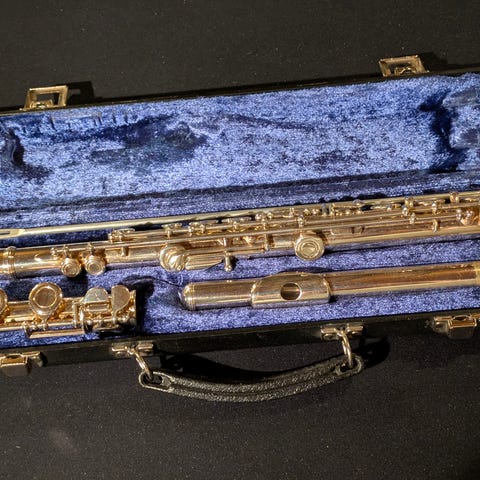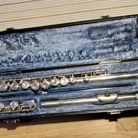 Yamaha tvärflöjt i silver, modell 211S II. Inga bucklor eller skador.