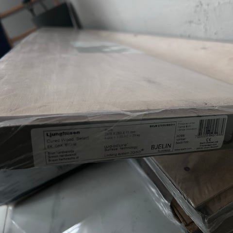 Lättmonterat trägolv i hög kvalité. Ca 15 kvm 7 paket obruten förpackning