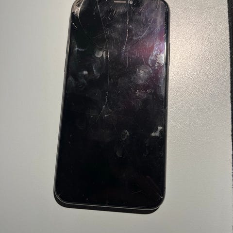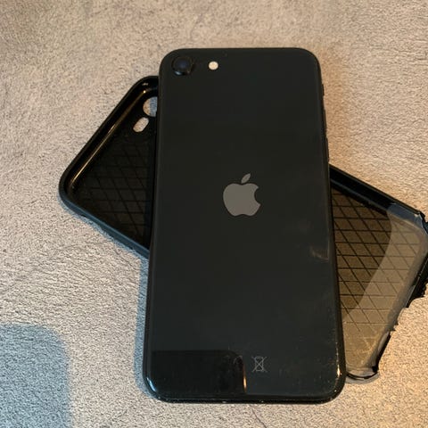 Apple iPhone SE (2-3 gen) mobiltelefon med 64 GB lagringsutrymme i svart färg. Telefonen har en skärmstorlek och design som är karakteristisk för iPhone SE-serien. Enheten är använd och har synliga repor och sprickor på baksidan. Nåt litet på framsidan som ej stör. Men telefonen fungerar perfekt, allt funkar på den, och inget är bytt på den. Skalskydd följer med då ser man inte det på baksidan. Batterihälsa 79%.
