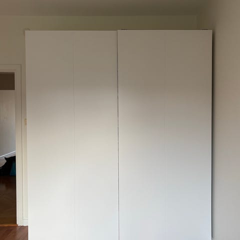 3st dörrar på 80cm styck, en med svarta ”speglar” och två trä. Totalt 240cm i bredd.