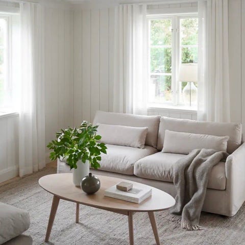 Rowico Yumi vitpigmenterat soffbord 90cm samt satsbord med sittpuff