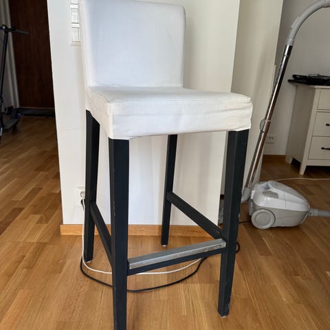 Säljer tre stilrena barstolar i grågrön färg. Stadig konstruktion med fotring och justerbar sitthöjd, passar både köksö och bardisk.