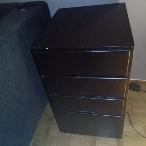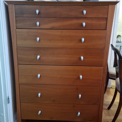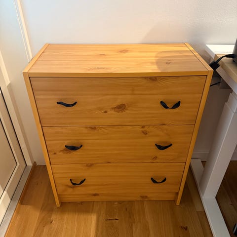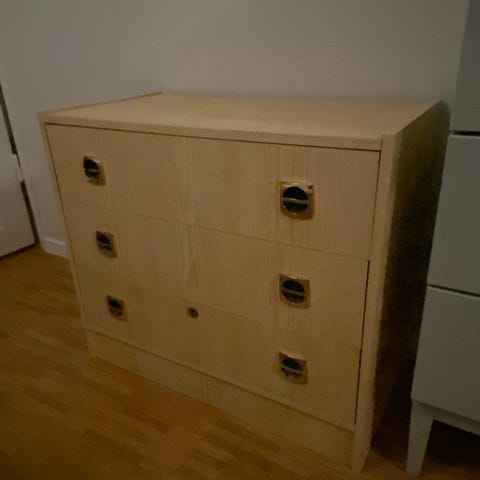 Vit byrå med fina glasknoppar bortskänkes