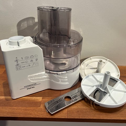 Wilfa stavmixer med flera tillbehör inklusive visp, hackare och måttbägare. Utrustad med rostfritt stål och plastkomponenter. Designad för mångsidig användning i köket.