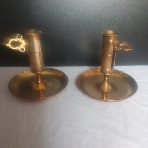 Säljer två stycken Malm ljusstakar 11cm i höjd och 9cm i diameter!