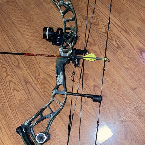 Bågen säljes ren men kan få med lite grejer som pilhylla, billigare sikte en bunt pilar, handledsrelease, väska för tillägg 500kr.