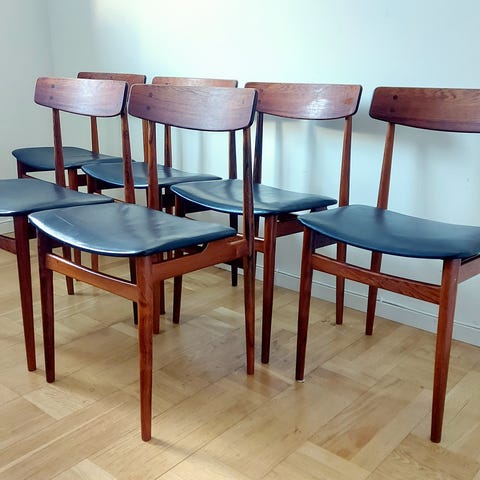 Bild 3 visar stolarna runt ett danskt bord. Bordet ingår inte utan säljs separat i en annan av mina annonser.