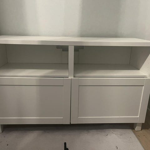 TV/Mediabänk i svartbrun. Troligtvis en äldre modell av IKEA Bestå.