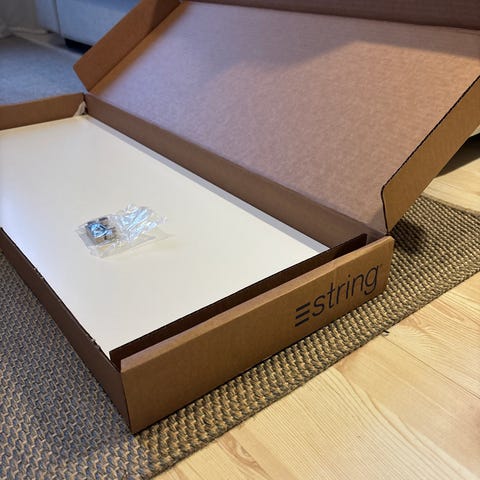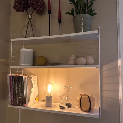 String hylla i vit metall designad av Nils Strinning. Hyllan är en del av String möbelsortiment och används för förvaring och organisering. Passar för olika rum och ändamål.