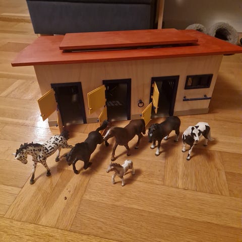 Schleich ridstall / hästgård, hästar & många tillbehör