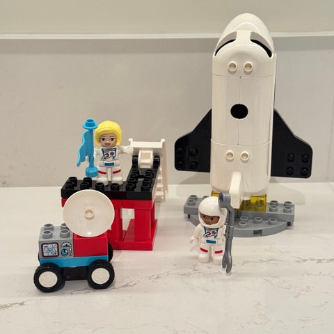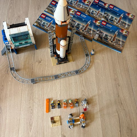 LEGO City Rymdfärja med tillbehör inklusive startplattform. Setet är byggbart med detaljerade delar som öppningsbar lastutrymme och rörliga komponenter. Passar för barn och samlare intresserade av rymdtema. Inga mini figurer. 6000 kr ny pris.