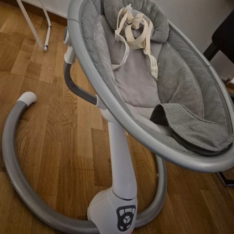 Beemoo Babysitter i grå färg med mjukt vadderat säte och säkerhetssele.