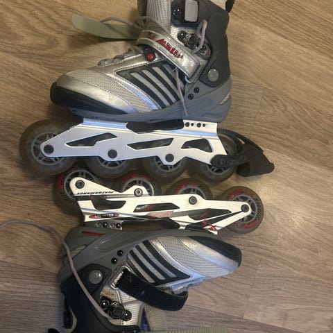 Köpta secondhand för samma pris och inte använda sedan dess eftersom jag tycker det känns lite läskigt att åka rullskridskor.
