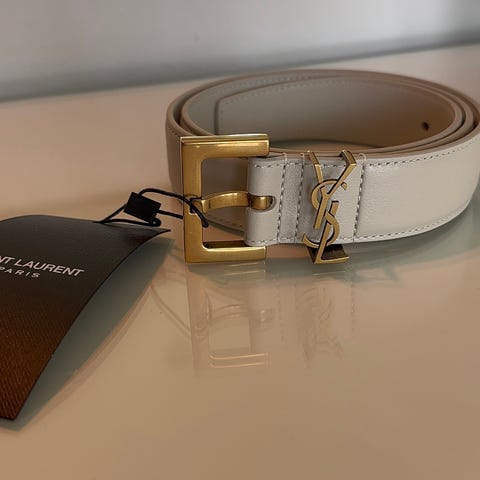Saint Laurent brosch tillverkad i guldpläterat material, avsedd för kvinnor.