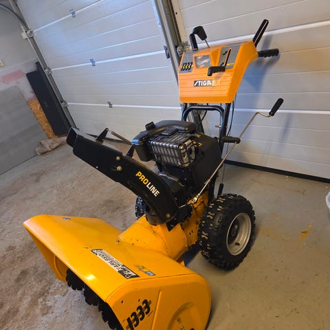 Stiga 523 snöslunga med motor på 5 hästkrafter och arbetsbredd på 59 cm. Maskinen är avsedd för att röja snö och har robust konstruktion för effektiv snöröjning. 4vxl framåt o back. Fast pris.
