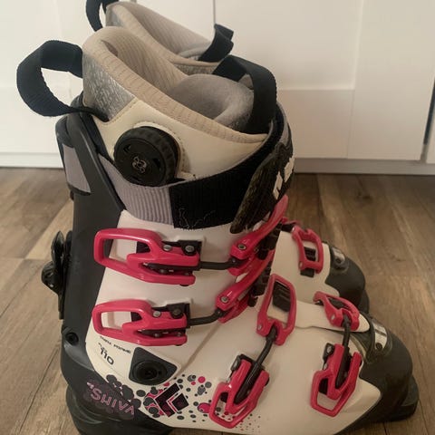 Salomon Quest Access 70 alpinskidskor i storlek 26, färg svart och vit. Skorna har justerbara spännen för en säker passform och är utrustade med en varm och mjuk innerfoder för komfort vid skidåkning. Dessa pjäxor är anpassade för dam och är designade för att ge maximal komfort och stabilitet.