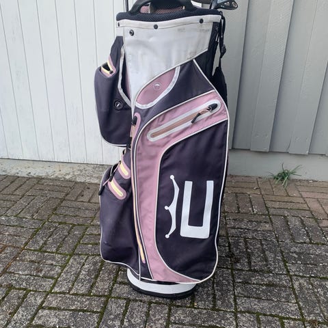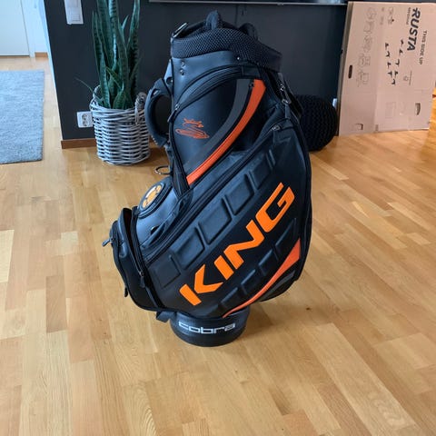 Cobra King UltraDry vagnbag i grå färg. Golfbag med flera fack och dragkedjor, designad för att passa på golfvagn. Tillverkad med material som tål olika väderförhållanden.