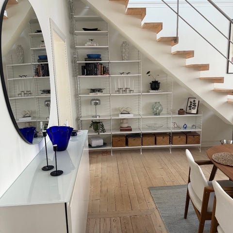 Säljer en original Stringhylla, troligen från 50–60-tal. Klassisk design med svarta gavlar i metall/tråd och hyllplan i trä. Stilren, stabil och tidlös – passar i vardagsrum, kontor eller hall.
