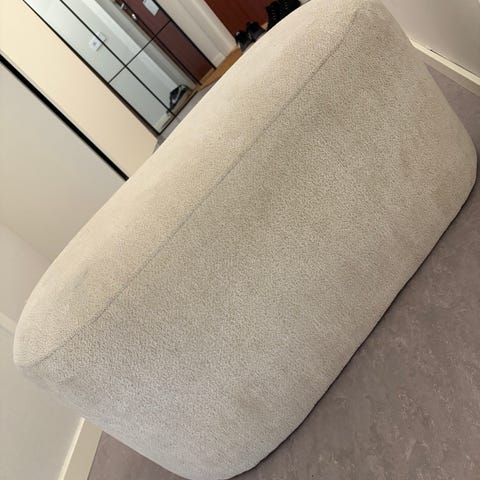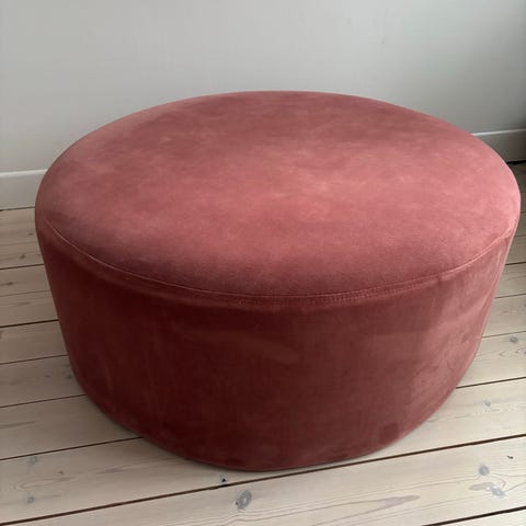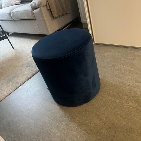 Liten vit sittpuff i sammet säljes. Fina skick med endast två små fläckar som knappt syns.