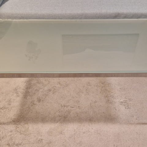 Snyggt soffbord med glasskiva och stilrena stålben/kanter. Mycket fint skick. Passar perfekt i ett modernt hem.