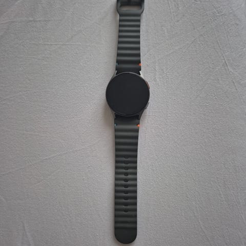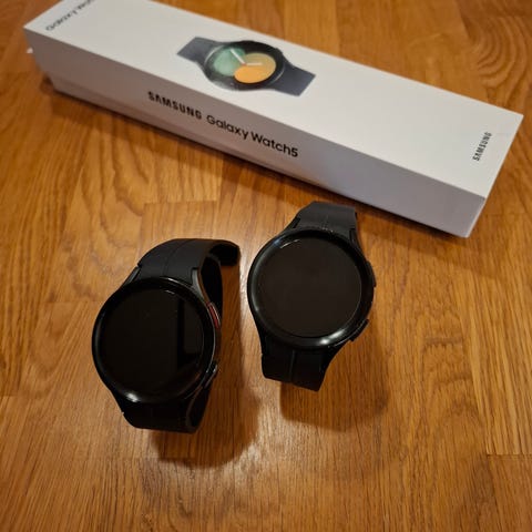 Samsung Galaxy Watch5 smartklocka i svart färg. Utrustad med en rund urtavla och en svart rem. Passar för daglig användning och har funktioner för hälsa och träning. Material och storlek är anpassade för bekväm användning.