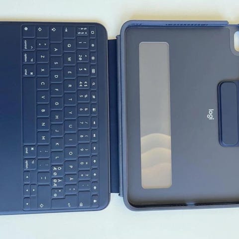 The keyboard integrates a touchpad, so it can function similarly to a Magic Keyboard except that it connects the iPad via Bluetooth. It is in US English layout.