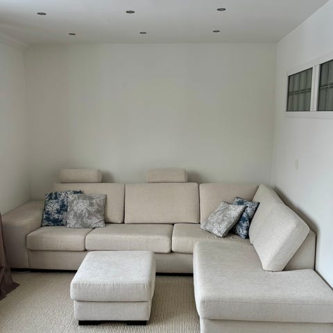 Soffa som vi säljer på grund av att den var för liten för oss, (är osäker på exakta måtten men hör av er så kan jag lösa de!)