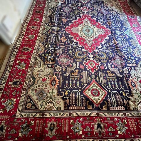 Fint skick utan fläckar, men med en liten slitskada efter ett stolsben