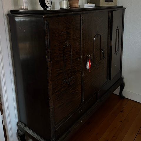 Fin skänk, Äpplet. Köpt någon gång i början på 1900-talet. Längd 152 cm, bredd 50 cm.