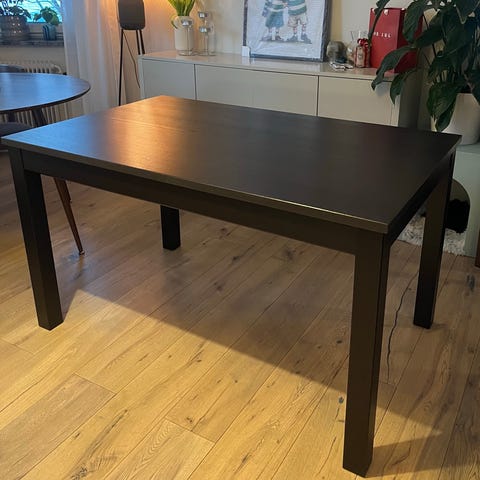 Har även en helt ny och oöppnad tilläggsskiva, med mått 50x90 cm. Med den kan bordet förlängas till totalt 190x90 cm vid behov. Det är även möjligt att komplettera med ytterligare en tilläggsskiva, för en total längd på 240 cm.