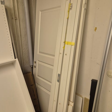 Vit innerdörr med speglar, avsedd för inomhusbruk. Inkluderar dörrkarm 7x21 (karmyttermått 69x209 cm).