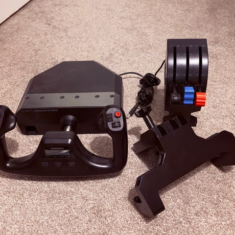 Logitech G Flight Rudder Pedals med justerbara fotpedaler och central vridningsmekanism. Används för flygsimuleringar och styrning av flygplansrodren.