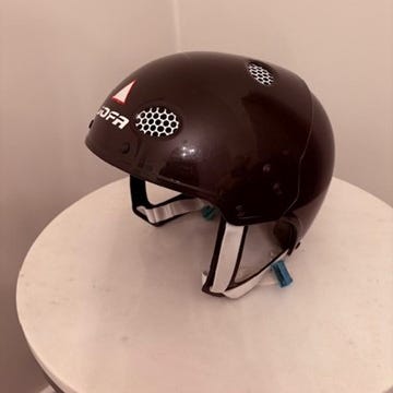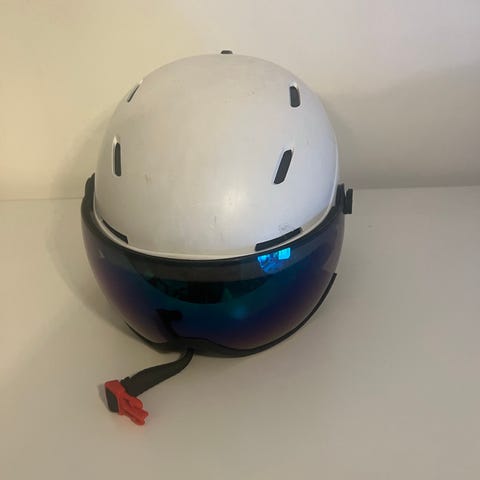 Firefly skid- och snowboardhjälm i färgerna vit och lila. Hjälmen har justerbara remmar och vadderad insida för komfort och skydd vid vintersport.