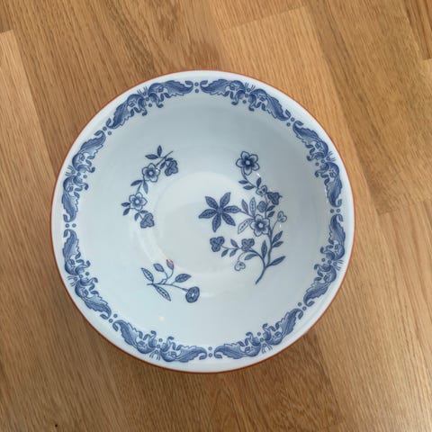 En vacker assiett från Rörstrand i modellen Athena med dekorativ kant i grått och vitt. Tallriken är tillverkad i porslin.