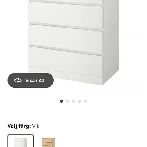 Vit byrå, gissar IKEA eller Mio, små märken i färgen men fungerar felfritt. Lådorna går som de ska.