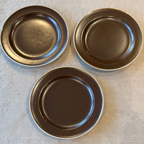 Hela men spår av användning finns. Den ena har en blå prick men är i övrigt fin. Den andra är krackelerad i glasyren. Se bilder för egen bedömning och hör av dig om du har frågor.