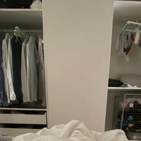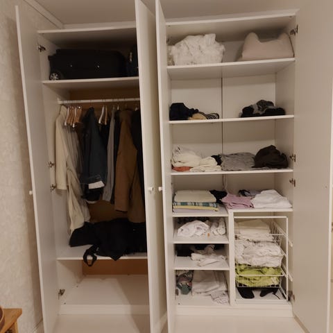 Garderob med skjutdörrar och med inredning. Allt från Ikea. Jättefin skick.