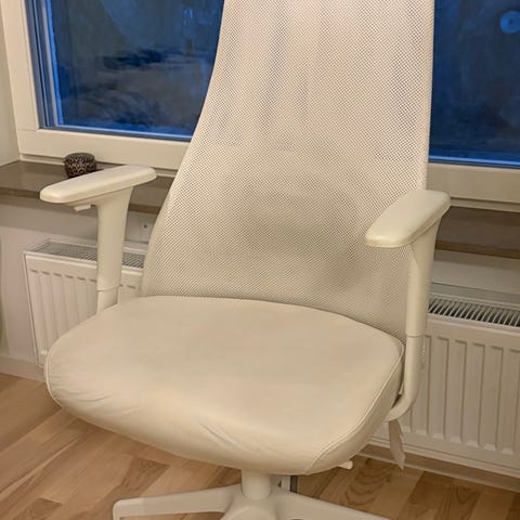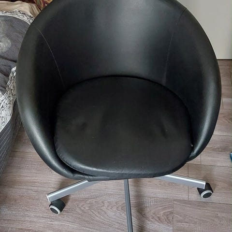 IKEA VOLMAR kontorsstol – svart narvläder, nackstöd