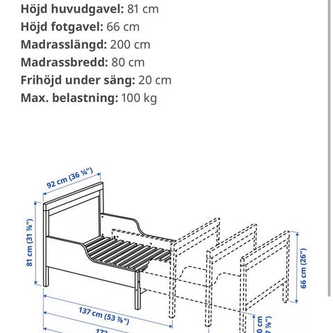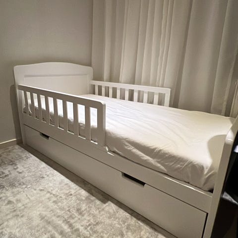 Vit laserad växasäng från IKEA, i fint använt skick. Ser ut som ny utöver några små märken på ena långsidan, se bild. 80 cm bred, för övriga mått se bild.