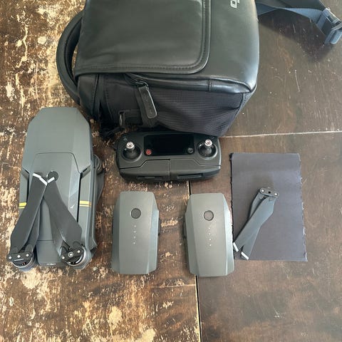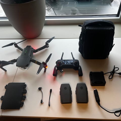 DJI Mavic Pro drönare med flera batterier, fjärrkontroll, laddare och bärväska enligt bild. kan levereras södra Stockholm, Södertälje, Nyköping.