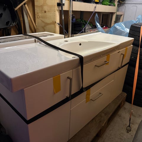 Inköpt i november för 3600kr på Bygghemma (online) för badrumsrenovering men den blir tyvärr för stor. Så vi säljer den här för halva priset.