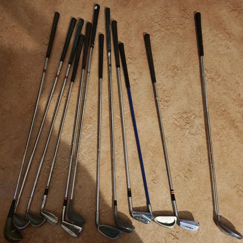 Blandade golfklubbor set inklusive olika järnklubbor och putter. Setet levereras med en bärbar golfbag. Klubborna är av juniorstorlek och material för golfspel.
