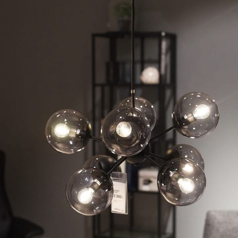 Handknuten svart taklampa med tvinnat papperssnöre från Mio, nypris 2495kr.
