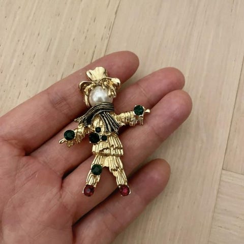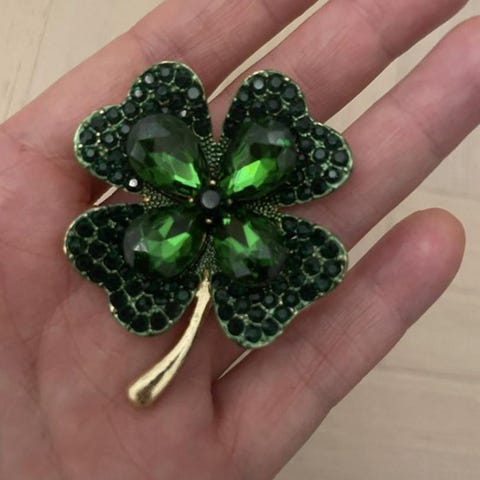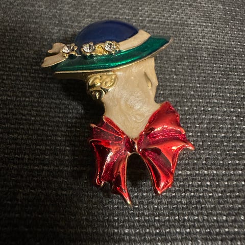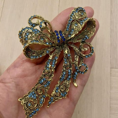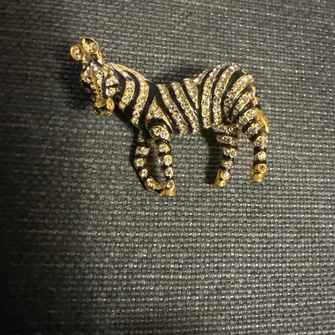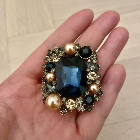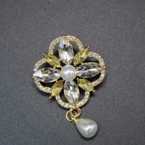 Brosch tillverkad i kristall och övrigt material. Broschen har en dekorativ form och är avsedd för unisex.