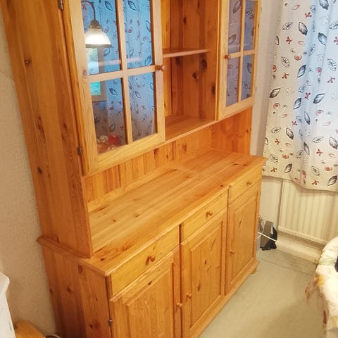 Säljer ett Exklusivt vitrinskåp i lantlig stil med nätpanel i dörren