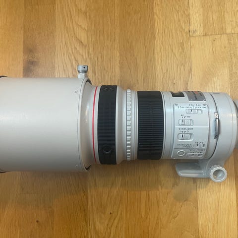 Canon EF 600mm f/4L IS II USM i bra skick. Mekaniskt felfritt och glas repfritt, endast färgskav som ses på bilderna. Bajonettfäste utbytt av Canon i samband med service. Originalfot oanvänd ingår (ej den på bild). Levereras komplett med väska och rem. Finns i Jonsered. Seriösa köpare välkomna.