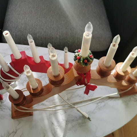 Har denna fina adventsljusstake över som inte funkar. Jag vet inte vad som är fel, det kanske bara är att byta lampor? Har inte testat.