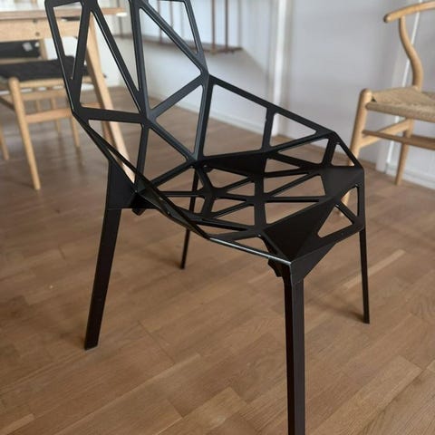 stol, designstol, metallstol, stålstol, perforerad, kromad, modern, skandinavisk design, inredningsobjekt, sittmöbel